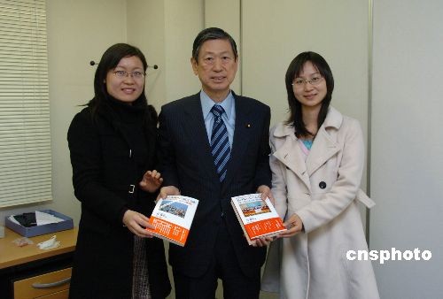 2月6日上午,日本前外相、日中友好議員聯(lián)盟會長、眾議院議員高村正彥,在東京接見了第四屆中國人日語征文大賽主辦單位日本僑報社代表和兩名最優(yōu)秀獎(日本大使獎)獲獎?wù)摺本┐髮W(xué)研究生徐蓓和湘潭大學(xué)青年教師張桐赫。高村正彥聽取了日本僑報社關(guān)于日中作文大賽的匯報,高度評價大賽為促進日中兩國人民的相互理解起了積極的作用。高村勉勵獲獎?wù)吆退袇①愓呃^續(xù)努力,為日中交流作出更大貢獻。高村正彥當(dāng)場揮毫,題寫了“相互理解 相互信賴”,表達對日中兩國青少年的期待。中新社發(fā) 段躍中 攝