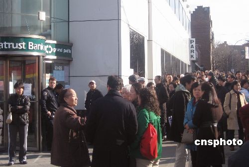 美國紐約華資背景的中國信托銀行紐約法拉盛分行,存放個(gè)人貴重物品的數(shù)十個(gè)保險(xiǎn)箱9日被盜。10日一早,大批華人憂心忡忡聚集在被盜銀行門前,希望了解具體情況。美國法律規(guī)定,保險(xiǎn)箱內(nèi)所存現(xiàn)金即便被盜也不獲賠付,很多華人一生積蓄恐因此付諸東流。中新社發(fā) 魏晞 攝