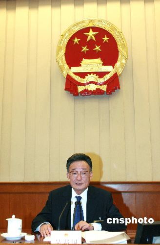 十月二十八日,十屆全國人大常委會第三十次會議在北京人民大會堂閉幕。全國人大常委會委員長吳邦國主持會議并講話。中新社發 廖文靜 攝