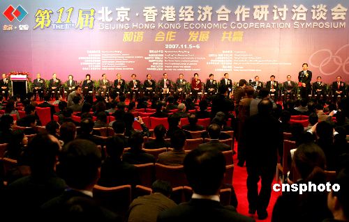 11月5日,第11屆北京·香港經濟合作研討洽談會在北京舉行。北京市市長王岐山與香港政務司司長唐英年出席開幕式。中新社發 張宇 攝