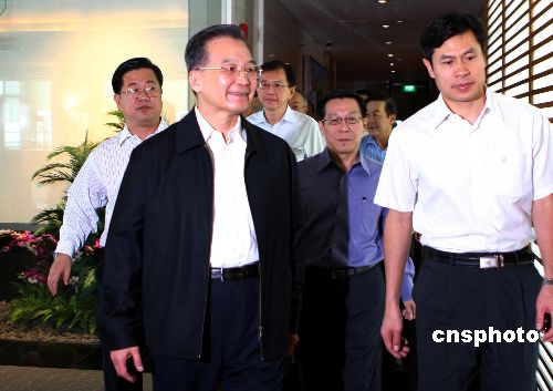 十一月二十一日上午,正在新加坡訪問并出席東亞領導人系列會議的中國國務院總理溫家寶,赴新加坡建屋發展局了解新加坡提供公共住屋的政策和經驗,并參觀新加坡普惠性廉價房區——大巴窯組屋區。中新社發 周群 攝