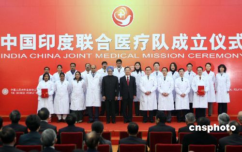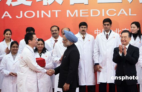 溫家寶與辛格出席中印聯(lián)合醫(yī)療隊成立儀式