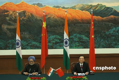 1月14日,中國國務院總理溫家寶與印度總理辛格在北京人民大會堂舉行會談,并共同會見記者。中新社發 盛佳鵬 攝