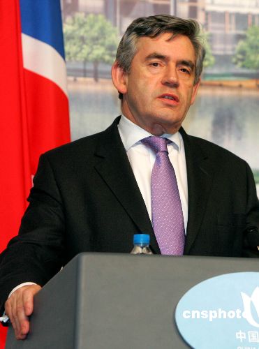 1月19日,正在華訪問的英國首相戈登·布朗在上海出席中外記者見面會時表示,英中之間合作的不斷加深有利于兩國的經濟發展。中新社發 湯彥俊 攝
