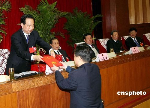2月24日,山東省十一屆人大常委會舉行第一次會議,省委書記、省人大常委會主任李建國主持會議。會上,表決通過了省人大常委會代表資格審查委員會組成人員名單,逐個表決通過了提請決定任命的省政府組成人員職務(wù),表決通過了《山東省人大常委會關(guān)于加強(qiáng)自身建設(shè)的意見》。李建國向26位被任命的省政府組成人員頒發(fā)了任命書并講話。中新社發(fā) 王輝 攝