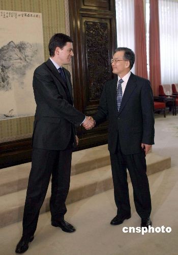 圖:溫家寶會見英國外交大臣米利班德