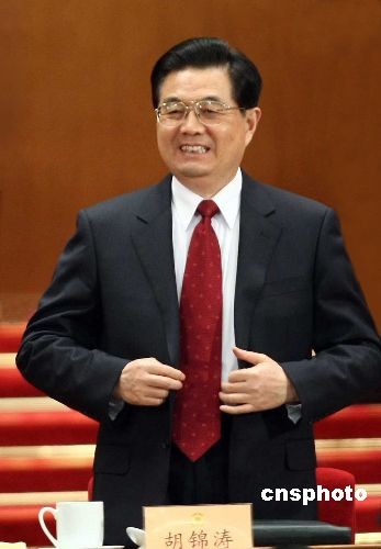3月3日,全國政協十一屆一次會議在北京人民大會堂開幕,胡錦濤出席會議。中新社發 盛佳鵬 攝