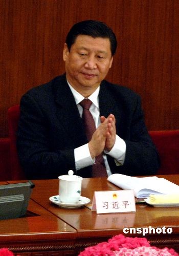 3月5日,十一屆全國人大一次會議在北京人民大會堂開幕,會議聽取溫家寶作政府工作報告。大會主席團常務主席、執行主席習近平在會上。中新社發 王東明 攝