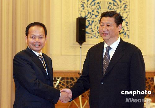 4月14日,中國國家副主席習近平在北京人民大會堂會見來訪的泰國外長諾帕敦。中新社發 廖文靜 攝