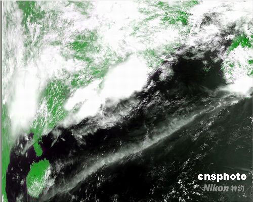 5月29日上午10點16分,廣州氣象衛星地面站成功接收到第一幅風云三號01星的HRPT(甚高分辨率)云圖,圖為該衛星拍回的照片。中新社發 楊綺薇 攝