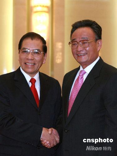 5月30日,中共中央政治局常委、全國人大常委會委員長吳邦國在北京人民大會堂會見越南共產(chǎn)黨中央委員會總書記農(nóng)德孟。中新社發(fā) 廖文靜 攝