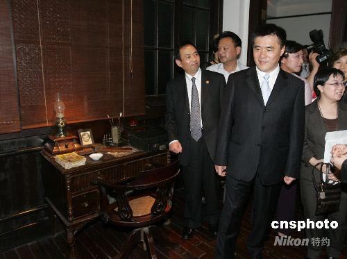 6月23日晚,臺(tái)北市長(zhǎng)郝龍斌到訪上海時(shí)尚地標(biāo)新天地,專門考察、參觀老上海的特色建筑——石庫(kù)門,了解上海的過(guò)去和現(xiàn)在。中新社發(fā) 潘索菲 攝