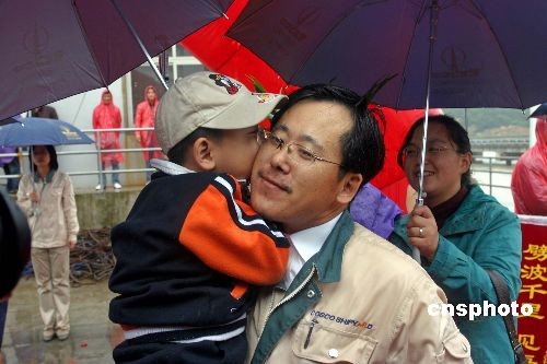 11月2日上午9時許,中國海事執法船“海巡21”載著被三艘外籍漁業輔助船挾持的15名中國公民,安全靠泊在浙江舟山長峙碼頭。在中國海事局、中國海上搜救中心的全力救助和韓、日兩國海事部門的協助下,10月20日被外籍漁業輔助船挾持的15名中國公民安全回到祖國懷抱。中新社發 黃正勝 攝