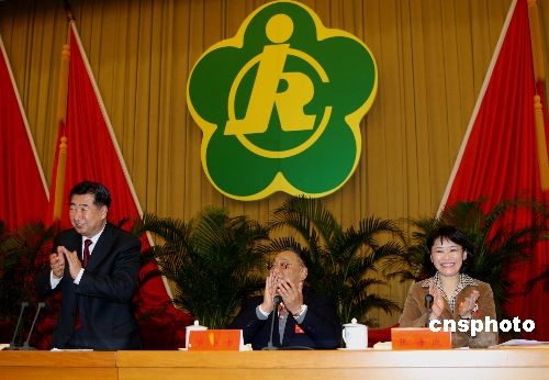 11月13日,在北京京西賓館舉行的中國殘疾人聯合會第五次全國代表大會上,鄧樸方當選為中國殘聯名譽主席,張海迪當選為中國殘聯主席。中新社發 史利 攝