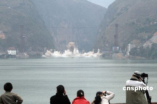 圖為龍門大橋爆破瞬間。中新社發(fā) 黃國(guó)萍 攝