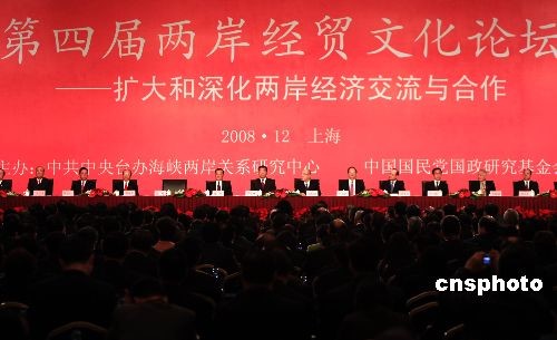 12月20日,由中共中央臺辦海研中心與中國國民黨國政研究基金會共同主辦的第四屆兩岸經(jīng)貿(mào)文化論壇在上海開幕。中新社發(fā) 湯彥俊 攝