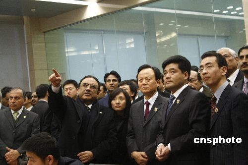 2月22日,應邀訪華的巴基斯坦總統扎爾達里,在中國三峽總公司總經理李永安等陪同下參訪了三峽工程,并希望通過這次考察訪問,推動巴基斯坦與湖北在水電開發、水利建設等領域的合作。中新社發 艾啟平 攝