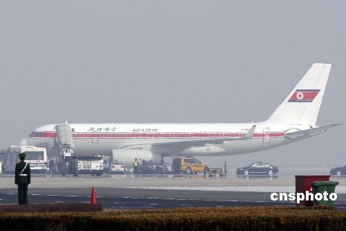 3月17日,朝鮮民主主義人民共和國內閣總理金英日乘專機抵達北京首都國際機場。應國務院總理溫家寶邀請,金英日當日上午抵達北京,開始對中國進行為期5天的正式友好訪問。據悉,此訪是金英日就任總理后首次訪華。中新社發 盛佳鵬 攝