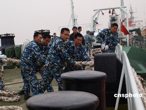 由中國海軍南海艦隊南救五0三船改裝的中國最大漁政執法船311號,三月十九日下午抵達三亞,完成首航西沙第一階段任務。中新社發 鄭小紅 攝