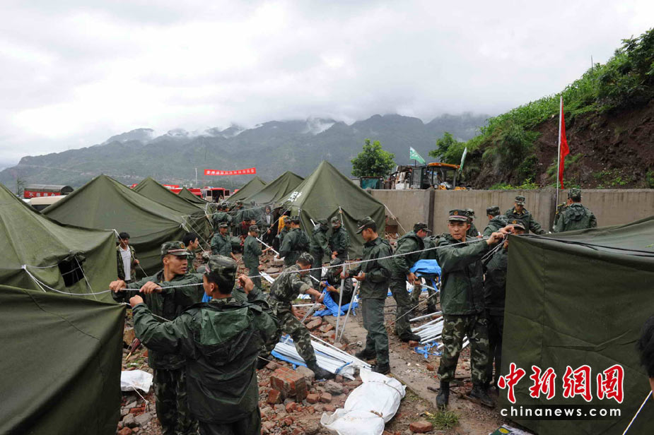 貴州關(guān)嶺滑坡 救援部隊(duì)為受災(zāi)群眾搭建帳篷