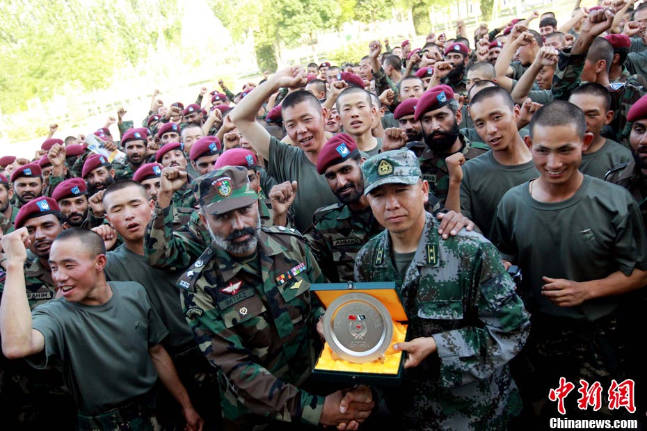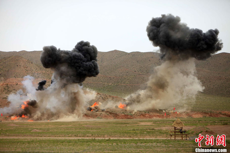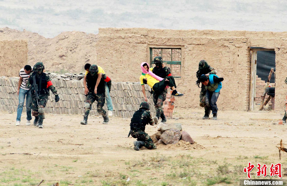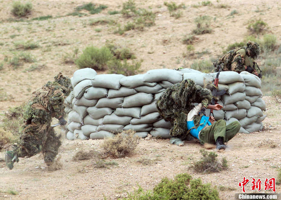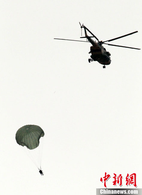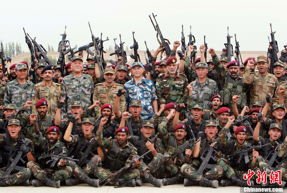 7月9日,友誼-2010”中巴反恐聯(lián)訓(xùn)在蘭州軍區(qū)某訓(xùn)練基地舉行實兵實彈演練,演練設(shè)計的背景是,對潛入中巴邊境地區(qū)實施襲擊破壞的國際恐怖分子進行聯(lián)合打擊。圍繞“邊境地區(qū)山地聯(lián)合反恐作戰(zhàn)”這一課題,演練了遠程投送、偵察監(jiān)視、立體封控、精確打擊、解救人質(zhì)、搜剿圍殲6個行動。這次反恐聯(lián)演的一個亮點,就是首次空地協(xié)同,聯(lián)合打擊,由地面反恐特戰(zhàn)人員引導(dǎo)殲轟機、武裝直升機實施空中火力突擊,采取精打要害的戰(zhàn)法,以建制內(nèi)的火器對恐怖分子營地重要目標實施火力打擊。中新社發(fā) 杜洋 攝