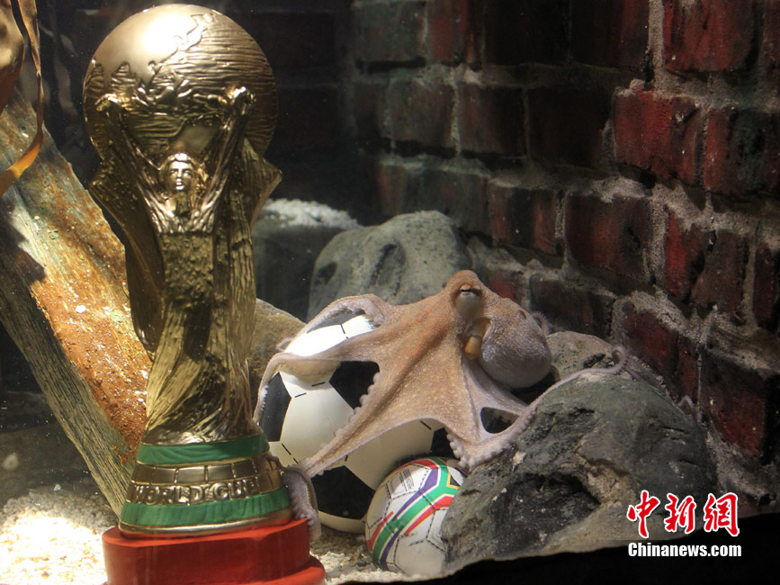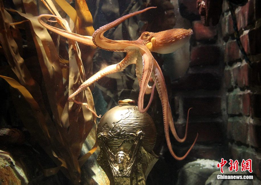 7月12日,德國(guó)水族館的工作人員給因?yàn)槌晒︻A(yù)測(cè)了德國(guó)隊(duì)的全部七場(chǎng)比賽以及決賽結(jié)果的神奇章魚保羅頒發(fā)了“大力神杯”,據(jù)說(shuō)保羅要激流勇退,未來(lái)不再出手對(duì)任何事情預(yù)測(cè)了。