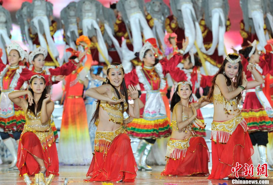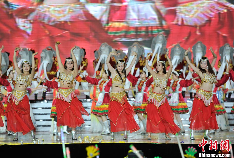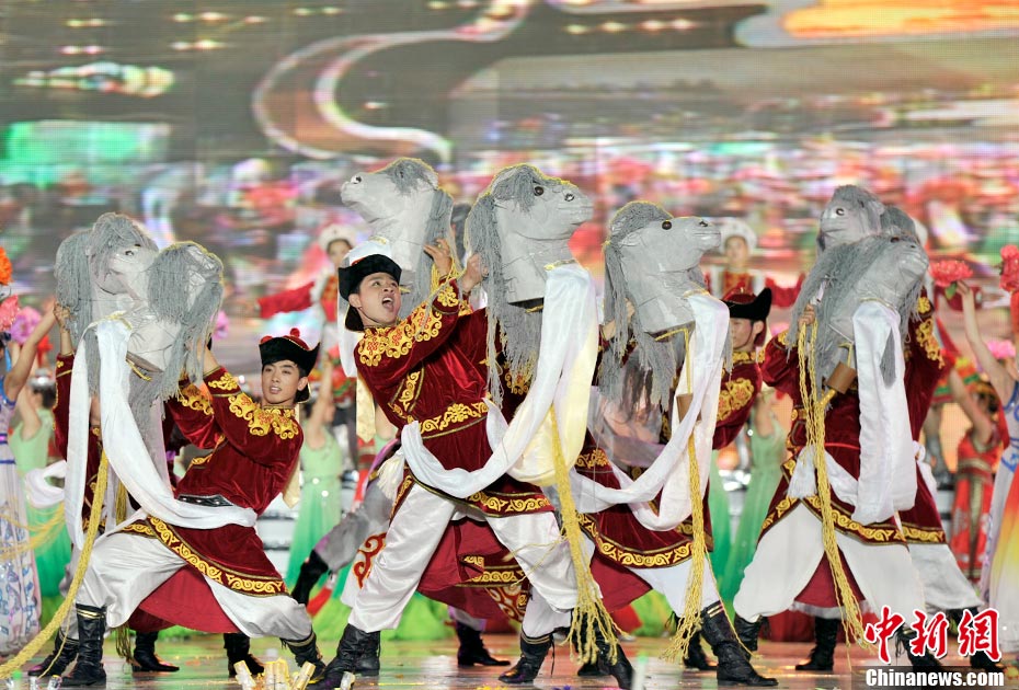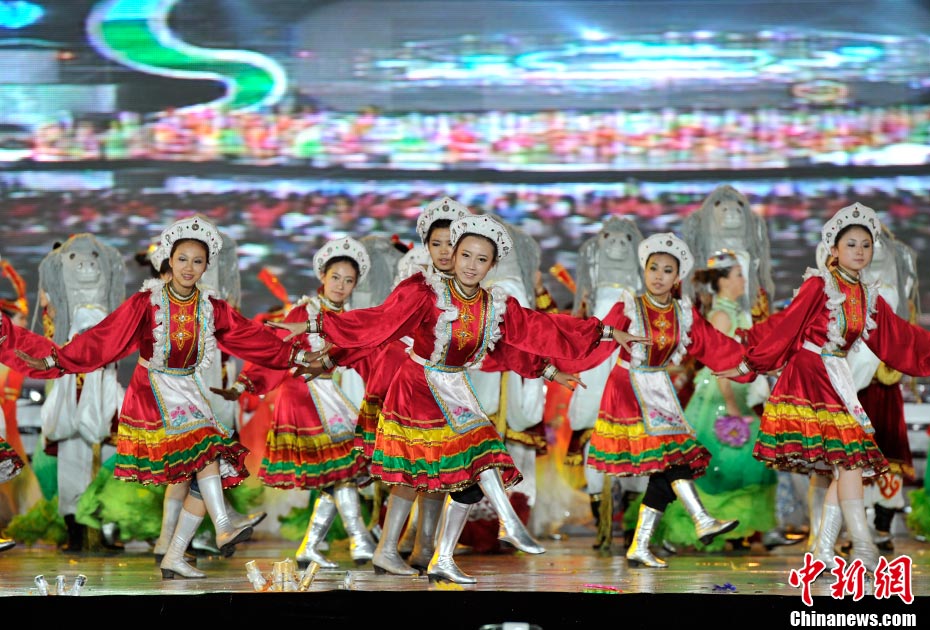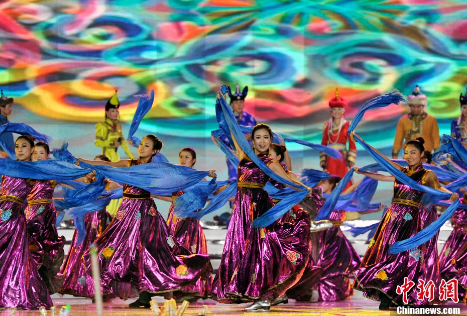 7月16日晚,第十一屆中國·呼和浩特昭君文化節在呼和浩特體育場絢麗開幕,充分展現了塞外青城的獨特魅力。中新網記者 金碩 攝