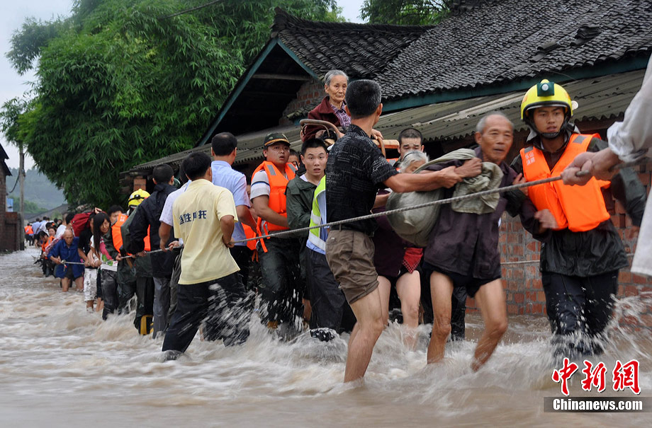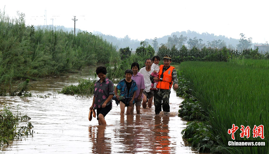 7月18日,記者從四川樂山市有關部門獲悉,持續的強降雨致使大渡河河水猛烈上漲,造成沙灣區嘉農鎮鎮內四個村莊被淹、群眾被困。險情發生后,樂山市公安消防支隊第一時間啟動抗洪搶險應急救援預案,70余名消防官兵快速反應全力以赴投入抗洪救災,安全轉移千余名被困群眾。劉福平 攝