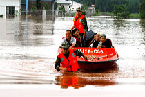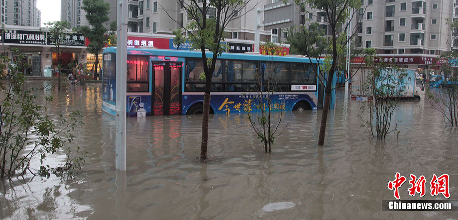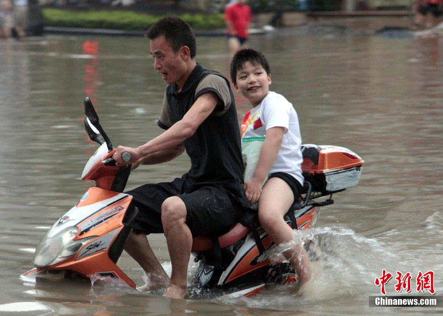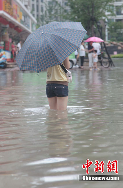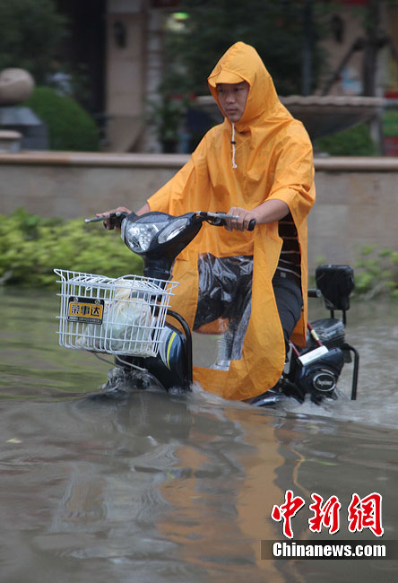 7月18日下午,安徽合肥降大暴雨,風力達7-8級,導致市區多處內澇,市內交通嚴重堵塞。淮河防總17日發布預警,淮河干流受持續降雨影響,將出現一次較大的洪水過程,淮河流域的降雨和上游來水可能使安徽省面臨長江、淮河兩線抗洪作戰的不利局面。中新社發 張婭子 攝