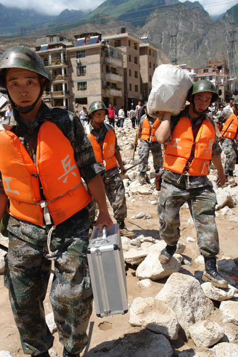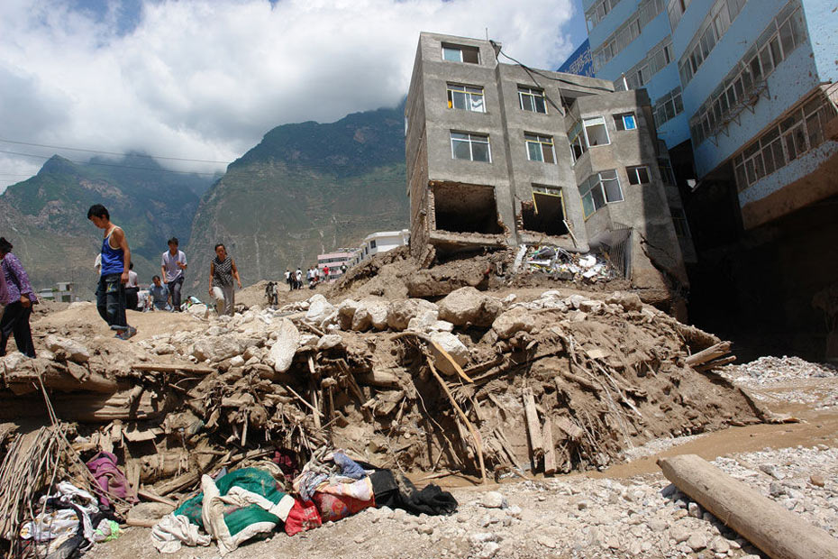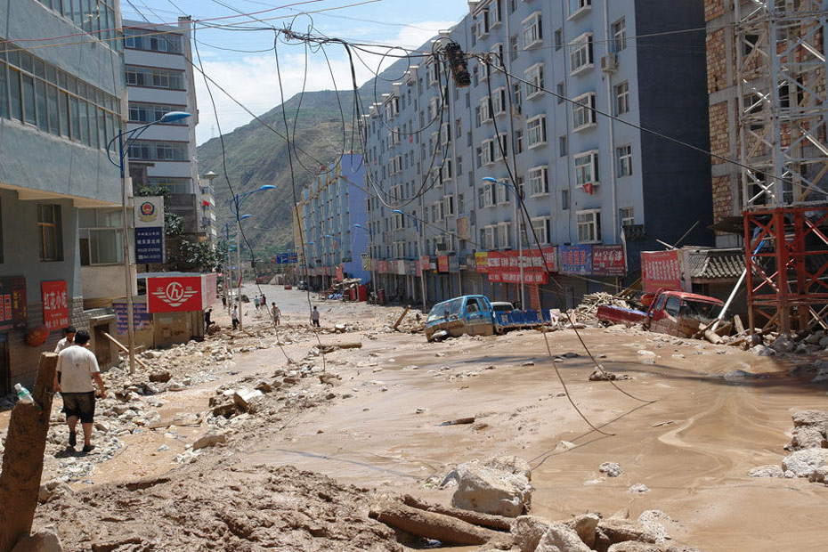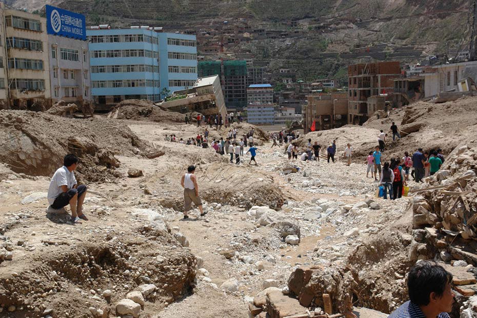8月7日22時許,甘南藏族自治州舟曲縣突降強降雨,縣城北面的羅家峪、三眼峪泥石流下泄,由北向南沖向縣城,造成沿河房屋被沖毀,泥石流阻斷白龍江、形成堰塞湖。截至當日16時統計,泥石流災害已造成127人死亡,76人受傷,近2000人失蹤,緊急轉移安置4.5萬人,倒塌房屋120余戶300余間。圖片來源 新華網