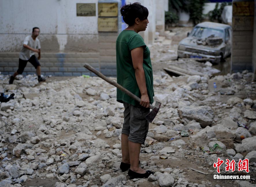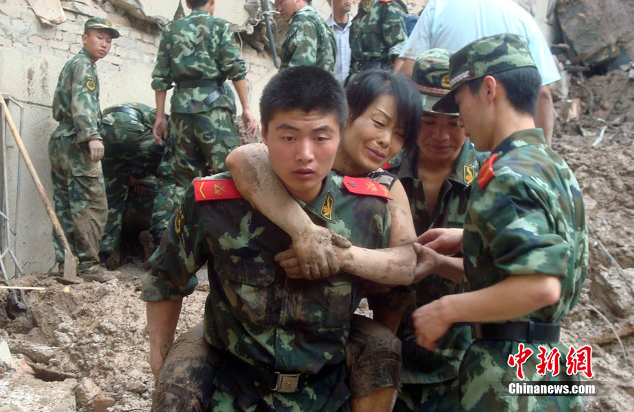 8月9日,甘肅舟曲泥石流災區搜救進入第二天。圖為消防官兵正在搜尋失蹤人員。中新社發 劉忠俊 攝