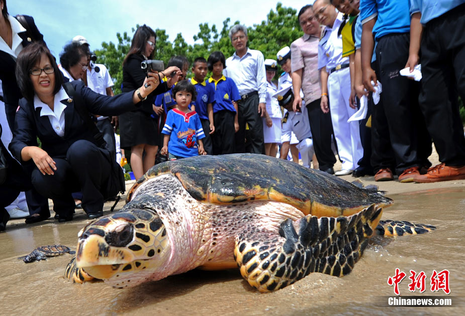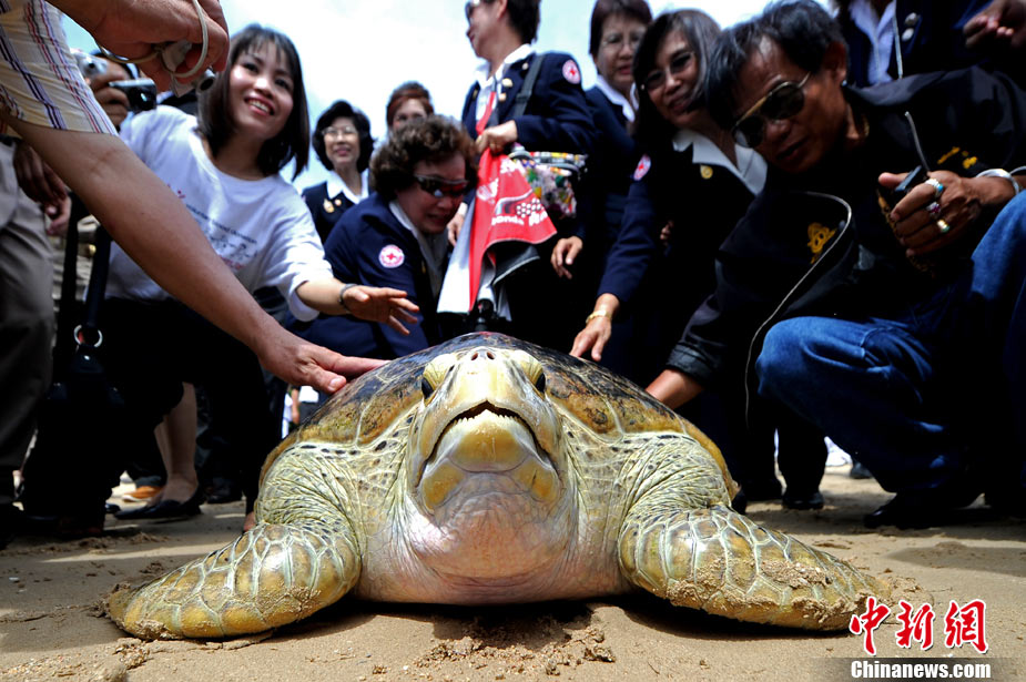 12日是泰國王后詩麗吉的78歲生日,泰國各地紛紛舉行活動慶祝王后生日。圖為一家海龜保護中心,專門舉行活動將700多只海龜放歸海洋,為慶祝泰國王后生日。