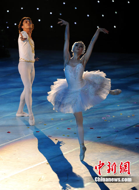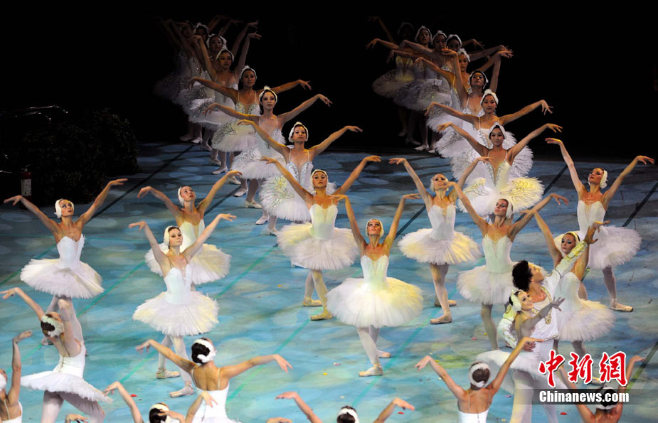 8月13日晚,大型全景芭蕾秀《天鵝湖》,在重新開幕的北京“水立方”成功舉行了首場(chǎng)演出。此次全景芭蕾秀《天鵝湖》(新版)將芭蕾、花泳、跳水、國(guó)標(biāo)舞、柔術(shù)、肩芭、雜技及空中特技八大夢(mèng)幻元素完美融合,秀出芭蕾藝術(shù)新魅力。此次演出由莫斯科城市芭蕾舞團(tuán)領(lǐng)銜,聚集國(guó)內(nèi)外頂尖演員,為觀眾奉獻(xiàn)一場(chǎng)全新演繹、震撼不斷的新版“夢(mèng)幻水立方”全景芭蕾秀。中新社發(fā) 劉震 攝