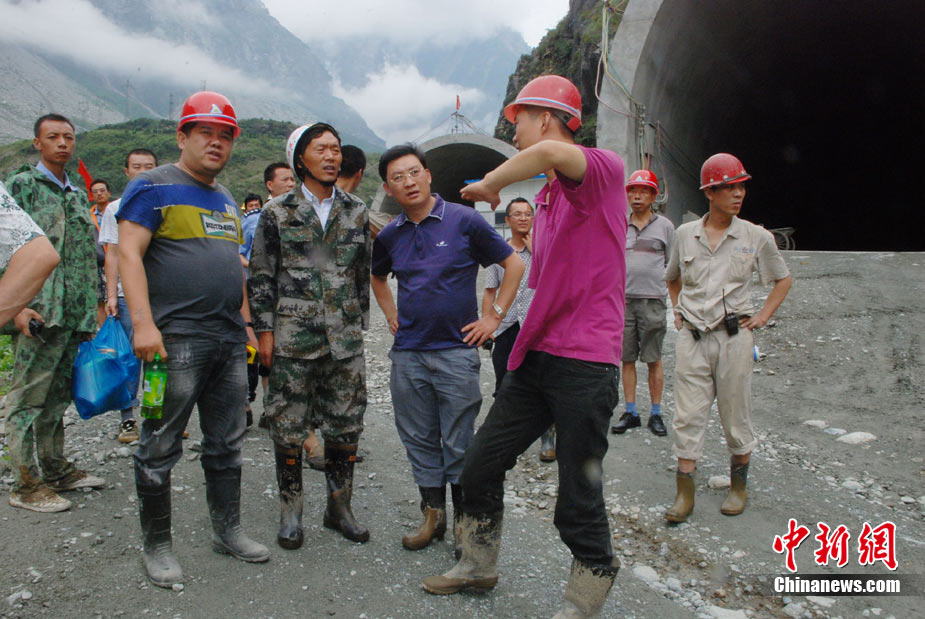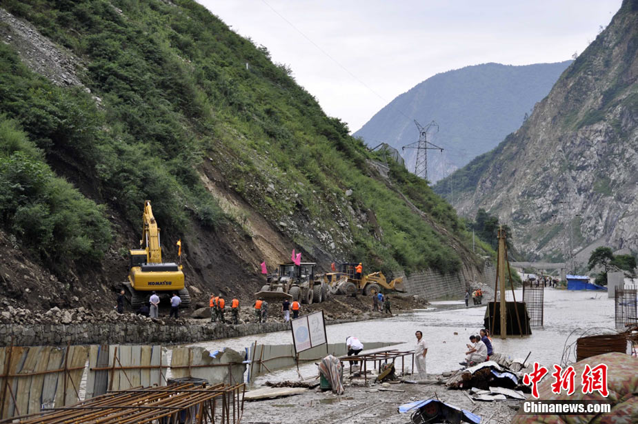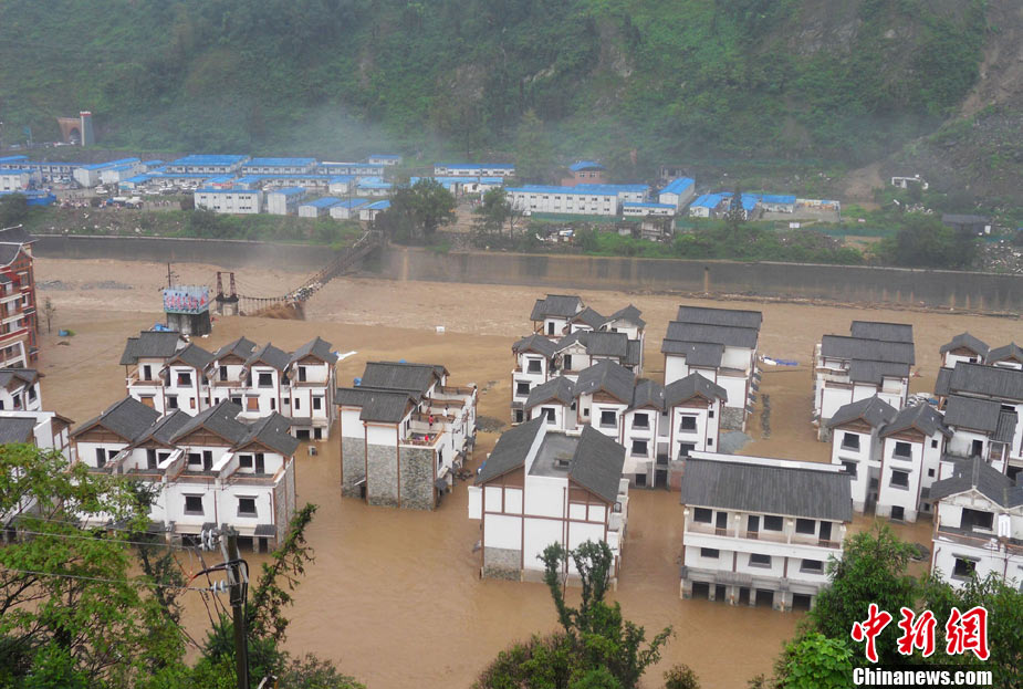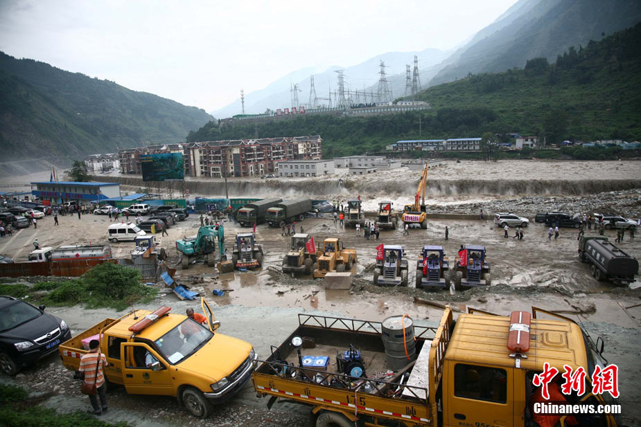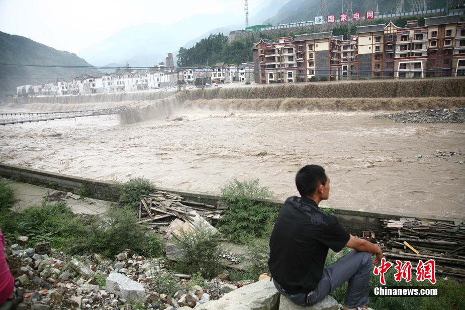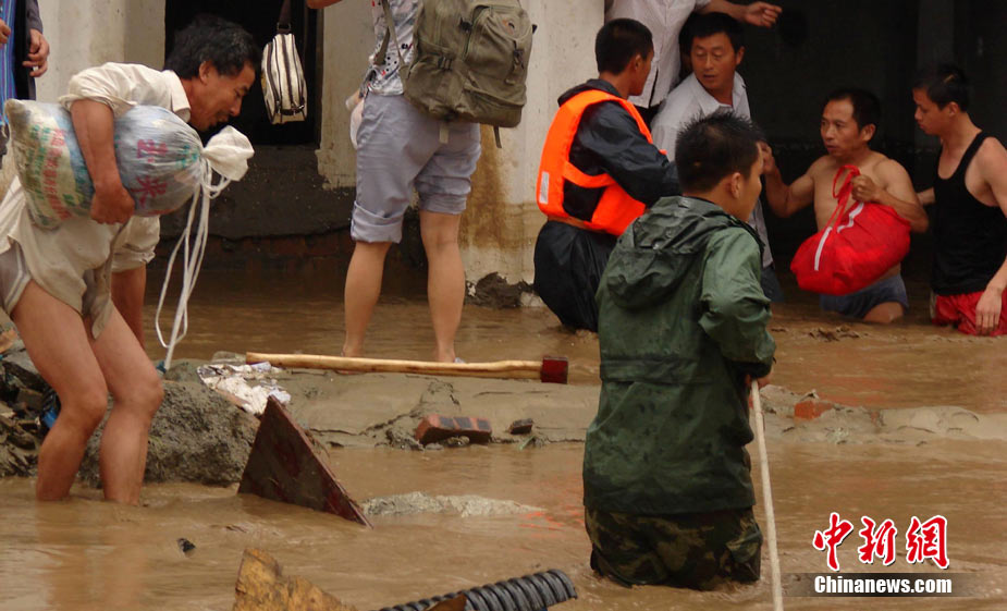 8月14日,四川德陽綿竹市清平、天池等山區(qū)遭遇暴雨泥石流襲擊,災(zāi)害發(fā)生后,德陽消防出動車輛20臺次,消防官兵123人次,從各類災(zāi)害事故中營救被困群眾26人,疏散群眾18人。圖為公安、消防、武警聯(lián)手營救被困村民。中新社發(fā) 沈消軒 攝