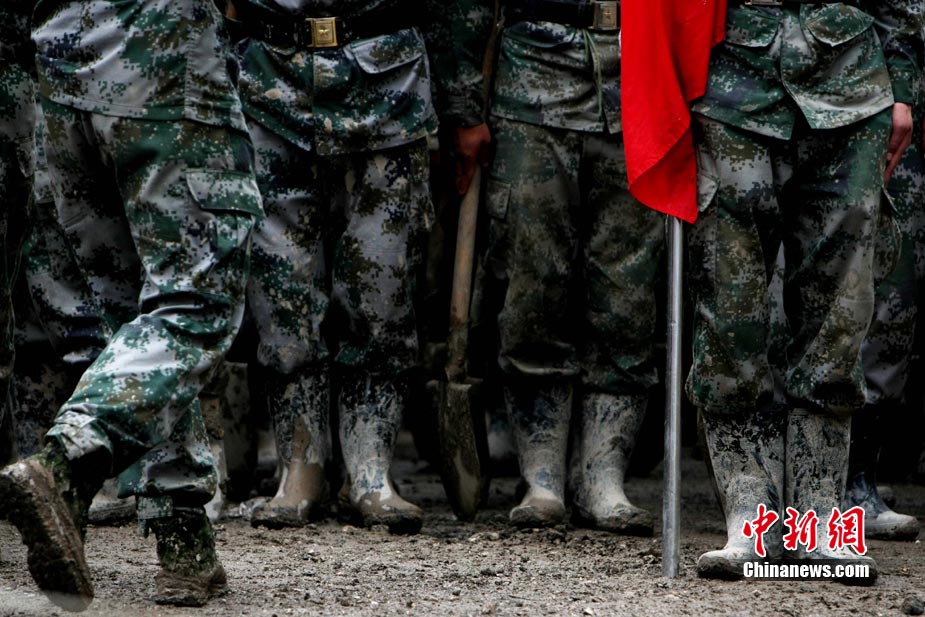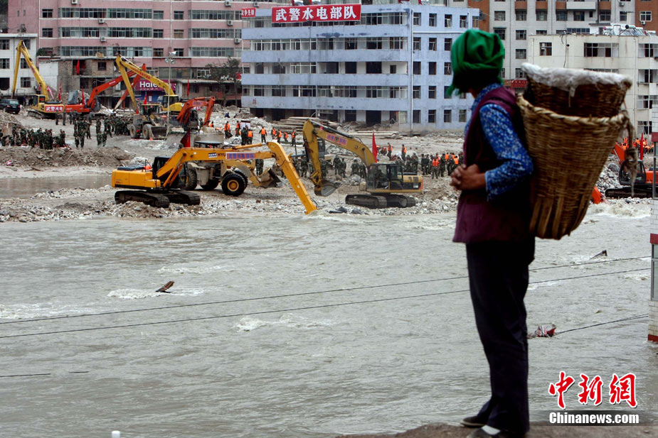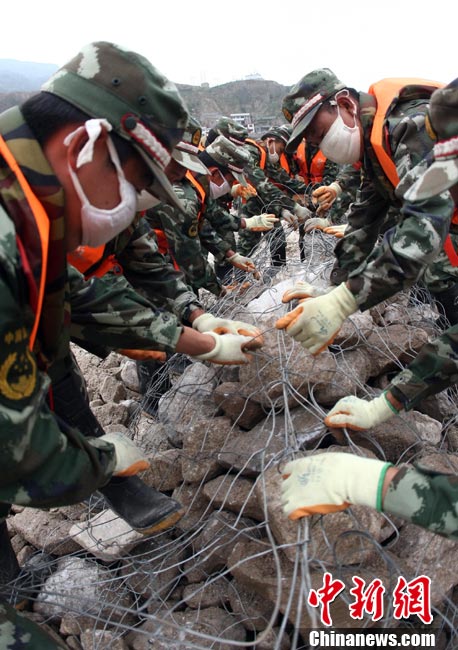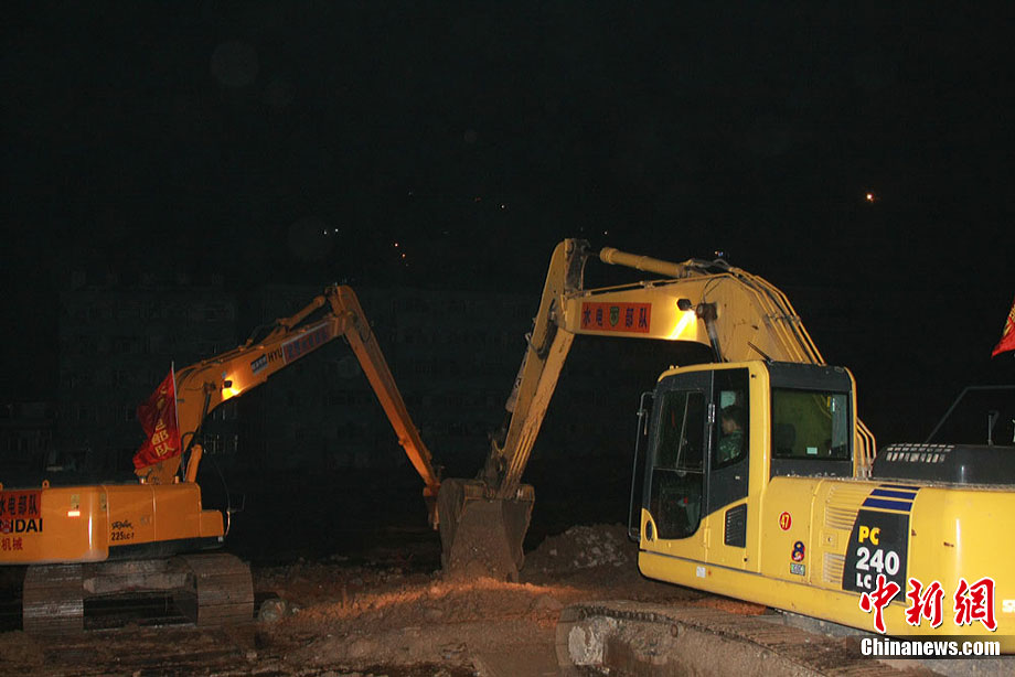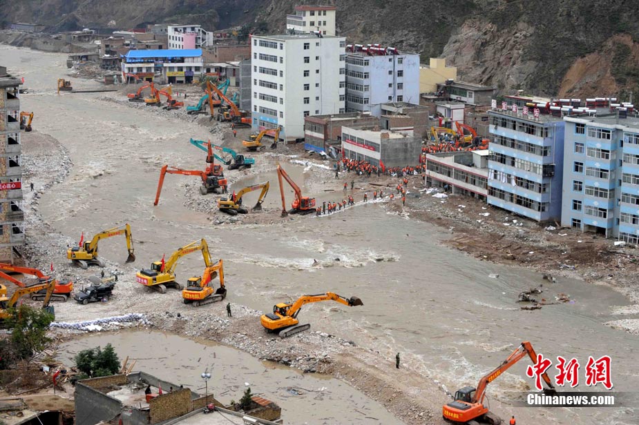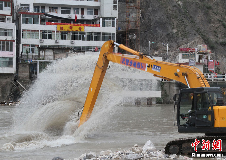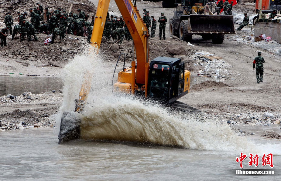 連日來,舟曲搶險(xiǎn)救災(zāi)部隊(duì)在三眼峪左岸通過鉛絲籠、石塊固基護(hù)腳,爭取盡早開展城江橋下堰塞體清淤疏通作業(yè)。中國水利部部長陳雷表示,舟曲白龍江堰塞體的處置難度已經(jīng)超過了汶川大地震時(shí)的唐家山堰塞湖。目前,三眼峪以下河段泄流河道已基本形成。根據(jù)武警水電第三總隊(duì)制定的目標(biāo),8月26日,白龍江中斷面控制水位要降至1303.38米,水位累計(jì)下降5.5米。圖為8月18日,武警水電第三總隊(duì)在舟曲挖掘堰塞體。中新社記者 殷春永 攝