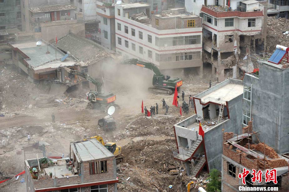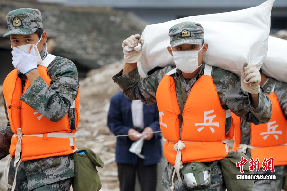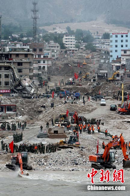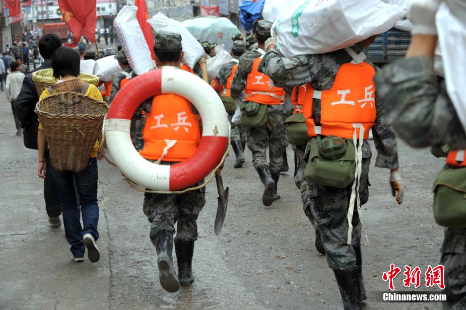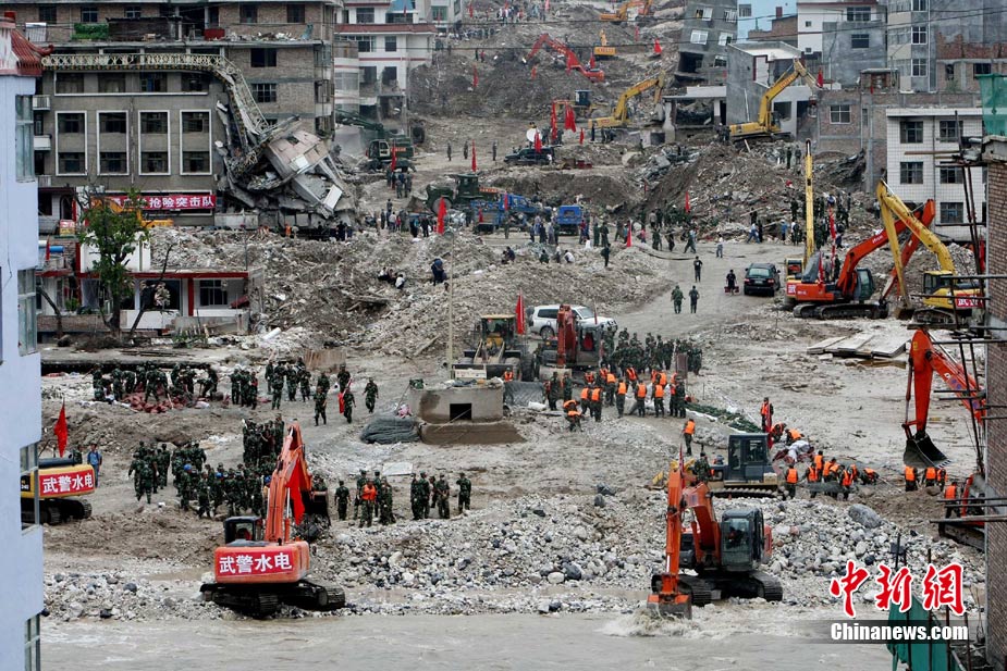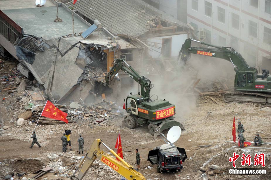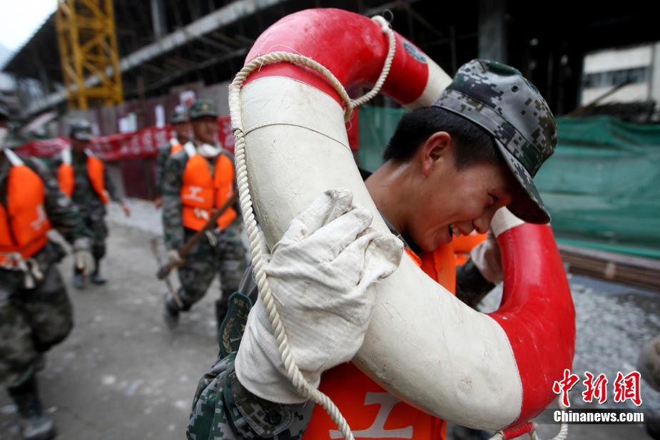 連日來,舟曲搶險(xiǎn)救災(zāi)部隊(duì)在三眼峪左岸通過鉛絲籠、石塊固基護(hù)腳,爭取盡早開展城江橋下堰塞體清淤疏通作業(yè)。中國水利部部長陳雷表示,舟曲白龍江堰塞體的處置難度已經(jīng)超過了汶川大地震時(shí)的唐家山堰塞湖。目前,三眼峪以下河段泄流河道已基本形成。根據(jù)武警水電第三總隊(duì)制定的目標(biāo),8月26日,白龍江中斷面控制水位要降至1303.38米,水位累計(jì)下降5.5米。圖為8月18日,武警水電第三總隊(duì)在舟曲挖掘堰塞體。中新社記者 殷春永 攝