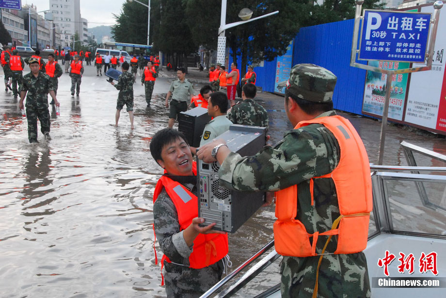 8月20日8時到21日8時,遼寧丹東降大暴雨,受強降雨影響,鴨綠江干流和部分支流發生大洪水。其中,寬甸縣虎山鎮、長甸鎮和古樓子鄉有1200多名民眾被洪水圍困,目前丹東市委市政府和駐丹東部隊全力應對強降雨,積極開展防汛抗洪工作,及時轉移危險地區的群眾,加強水庫堤防的巡查防守和調度,確保安全。中新社發 劉海東 攝