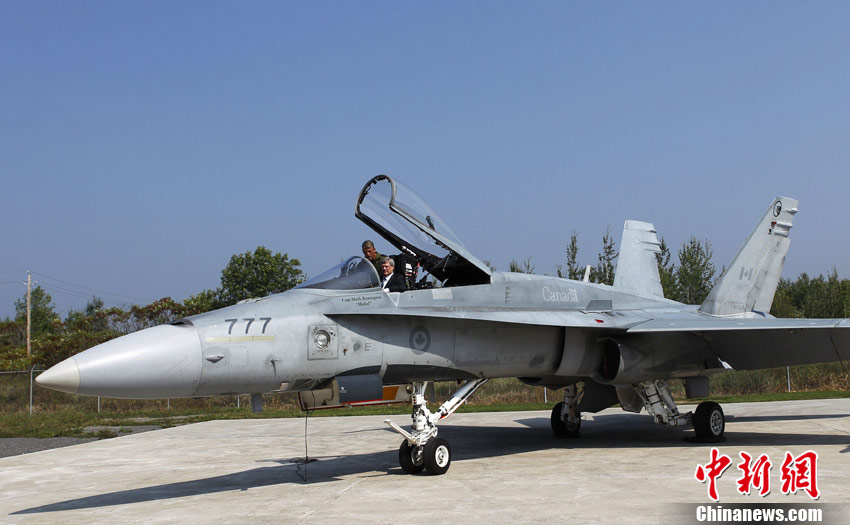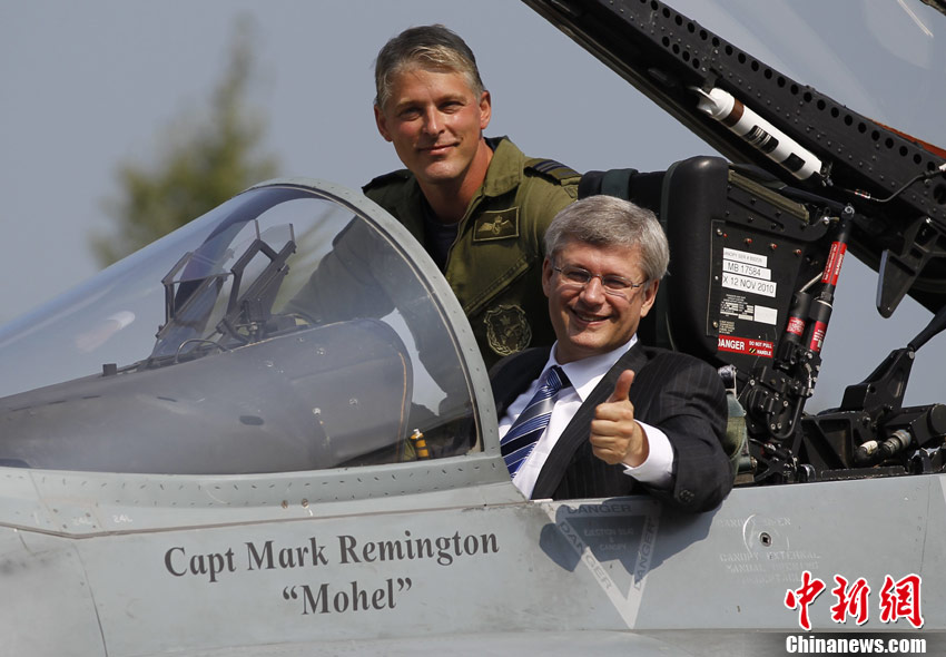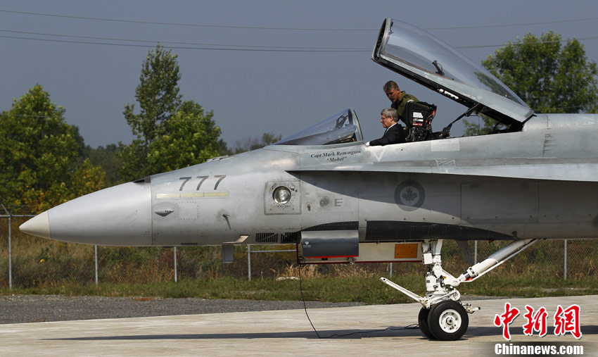 當地時間9月1日,加拿大米拉貝爾,加拿大總理哈珀參觀L-3通信公司,并坐進一架CF-18“大黃蜂”戰斗機駕駛艙進行體驗。