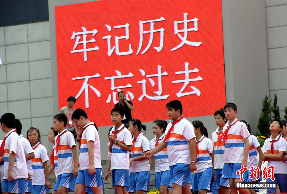 9月3日,北京的小學生到北京盧溝橋畔的中國人民抗日戰爭紀念館參觀,緬懷英烈。9月3日是中國人民抗日戰爭勝利暨世界反法西斯戰爭勝利65周年紀念日。中國各地舉辦各種紀念活動,以多種形式回望那段血雨腥風的歷史,緬懷抗日先烈,從歷史中汲取面向未來的力量。中新社記者 劉震 攝