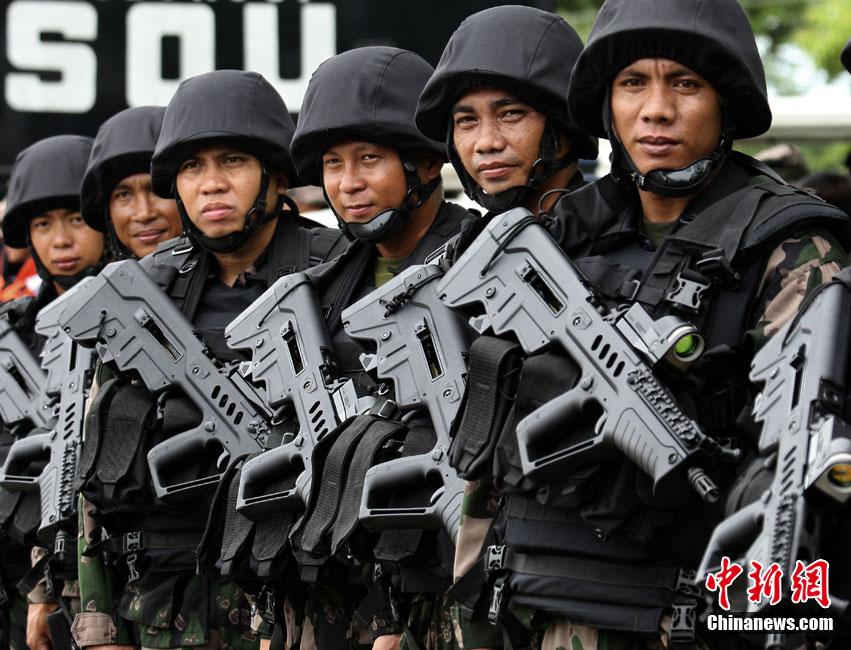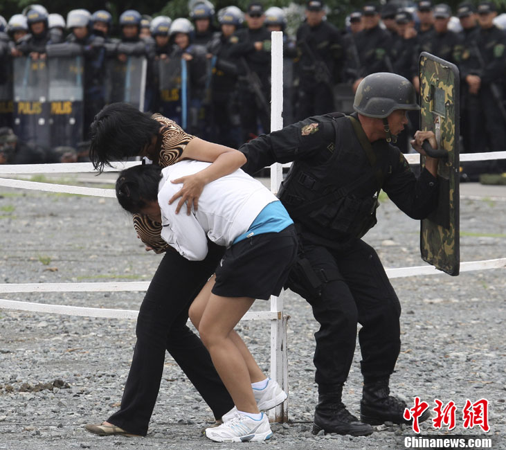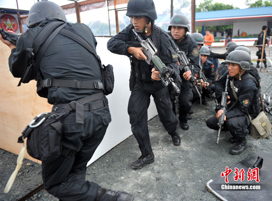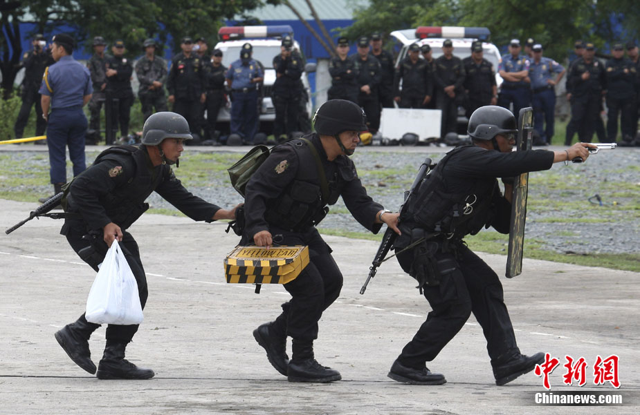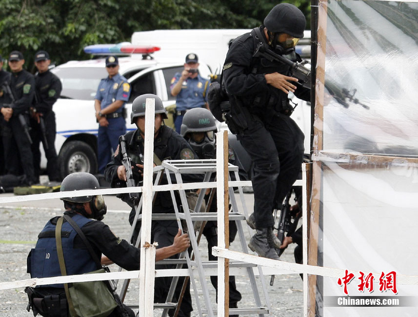 9月3日,菲律賓警察在首都司令部駐地內舉行解救人質演習。
