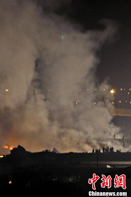 阿拉伯聯合酋長國民航總局3日發表聲明說,美國聯合包裹服務公司(UPS)一架波音747-400貨機當天晚上在迪拜墜毀,機上兩名飛行員喪生。圖為墜機現場。