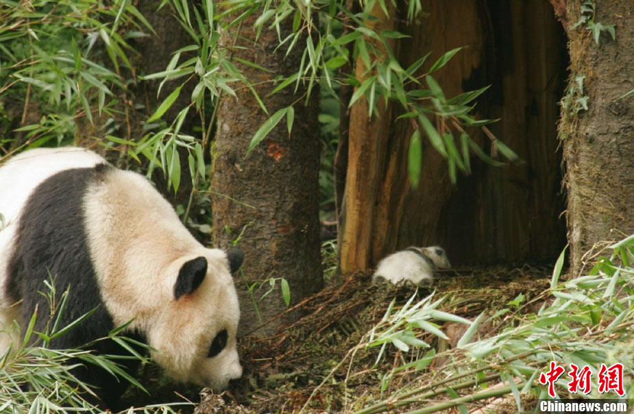 9月4日從臥龍中國(guó)保護(hù)大熊貓研究中心獲悉,全球首只在野化培訓(xùn)基地誕生的大熊貓寶寶----“草草”的幼仔已滿月。在8月3日降生于臥龍“核桃坪”野化培訓(xùn)基地后的一個(gè)月里,科研人員按預(yù)先計(jì)劃順利開(kāi)展了相關(guān)研究工作,讓“草草”帶著寶寶先在一個(gè)條件相對(duì)簡(jiǎn)單的環(huán)境中生活,目前,幼仔生長(zhǎng)狀況良好,從出生時(shí)的205克增長(zhǎng)到了1235克,身體健康,活力強(qiáng)。中新社發(fā) 曾昌霞 攝