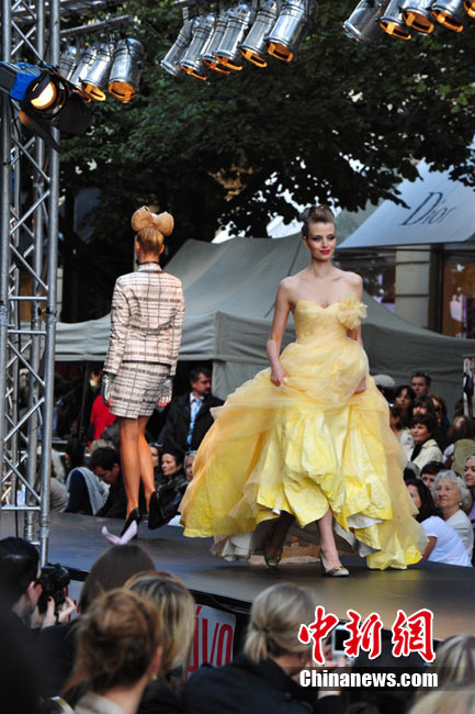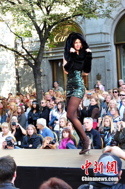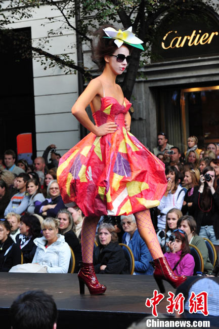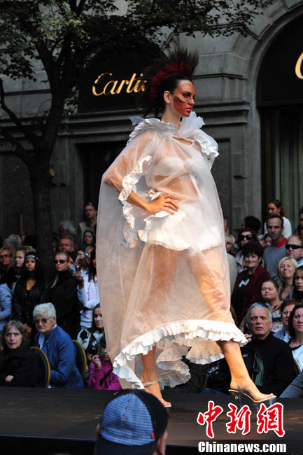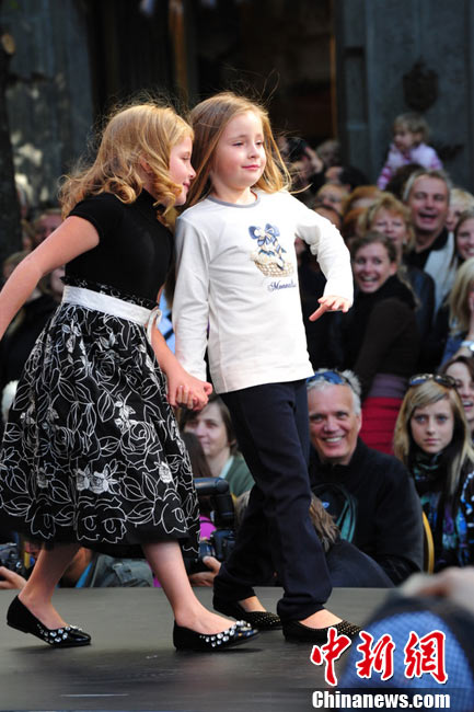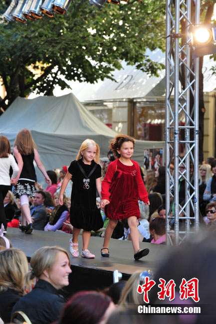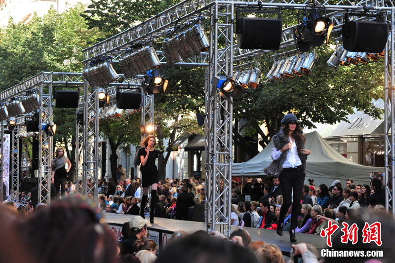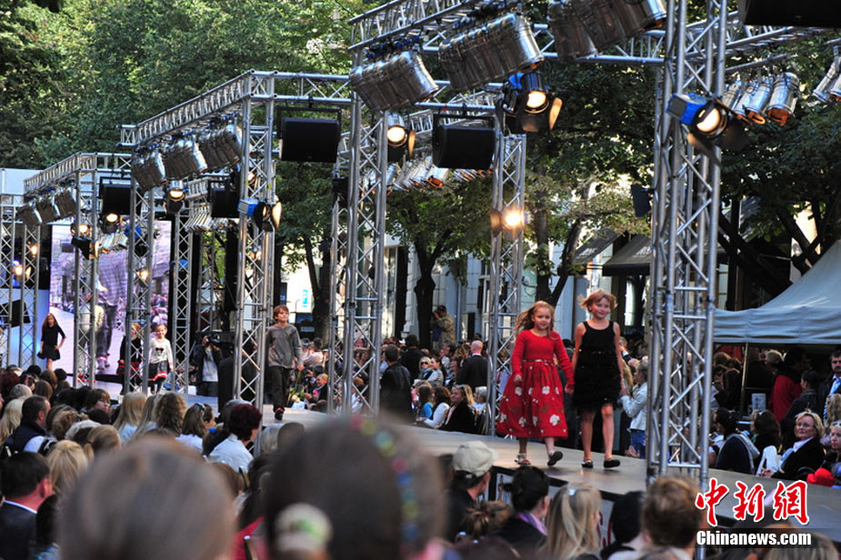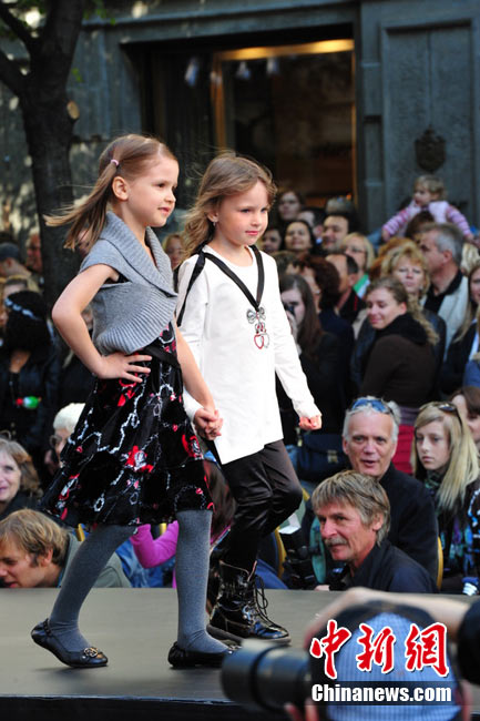 捷克首都布拉格4日和5日接連兩天在市中心最繁華的商業街巴黎大街封閉車輛交通,在街道中間搭起長臺,向公眾表演時裝秀。其中一組兒童秀引起觀眾轟動。黃頻 攝