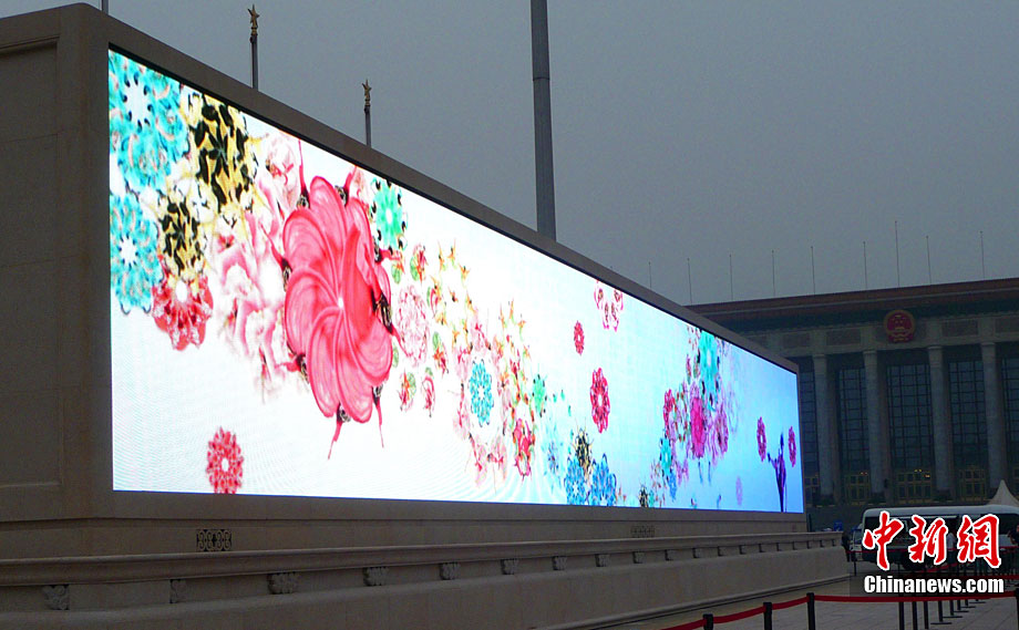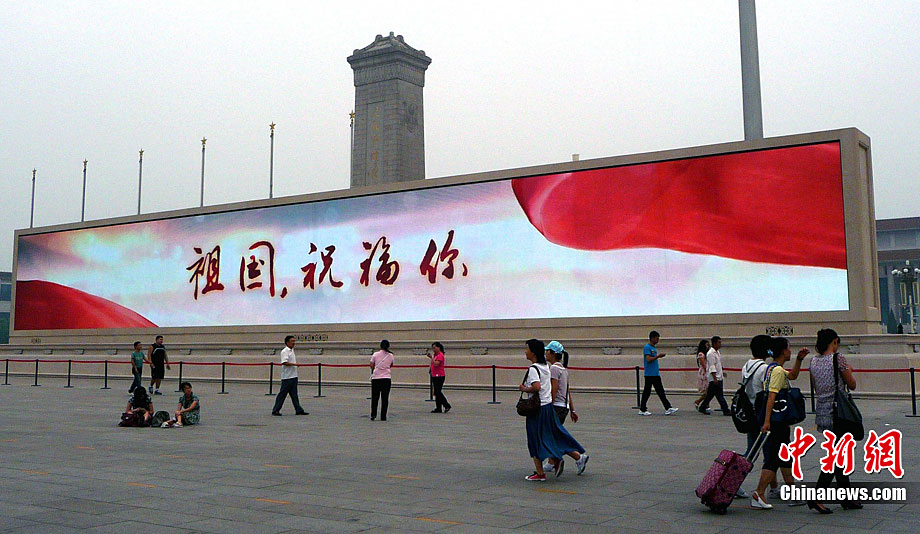 北京天安門廣場巨屏調試迎“國慶”