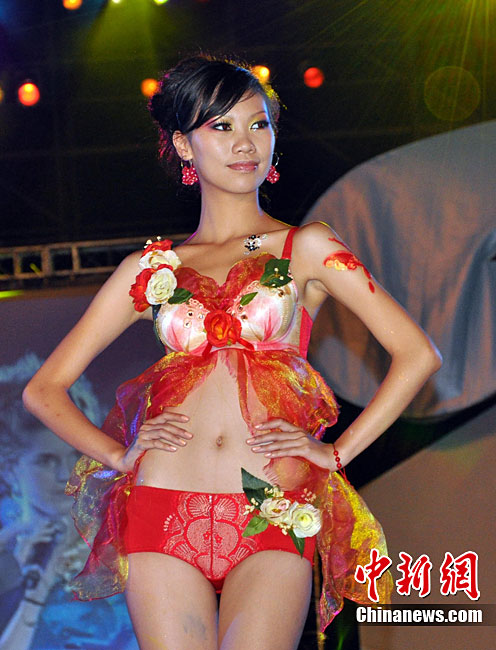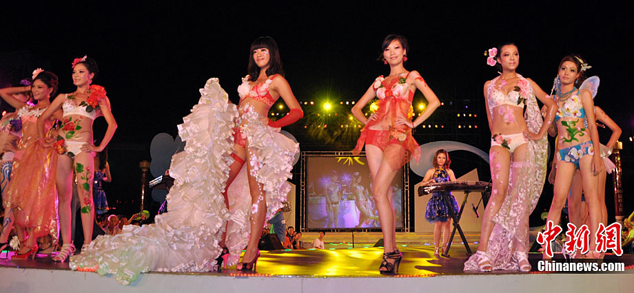 9月10日晚,在“中國茉莉之鄉”廣西南寧橫縣舉行的2010年中國國際茉莉花文化節上演人體花藝花繪魔幻秀。本屆茉莉花文化節將舉辦中國國際茉莉花文化節音樂節、中國花文化國際學術研討會、“花海·音樂之旅”觀光旅游活動、全國茉莉花茶市形勢分析會等活動。圖為模特秀花藝。中新社記者 楊志雄 攝
