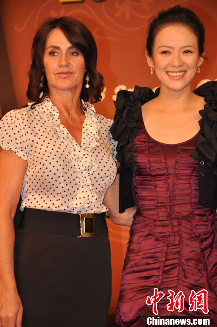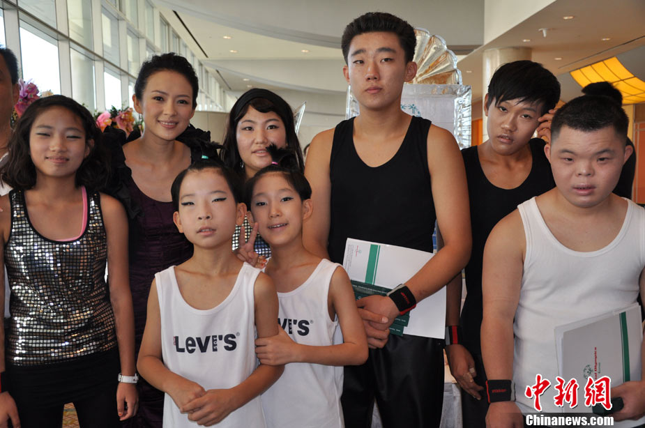 章子怡首爾與施瓦辛格同為智障兒童加油