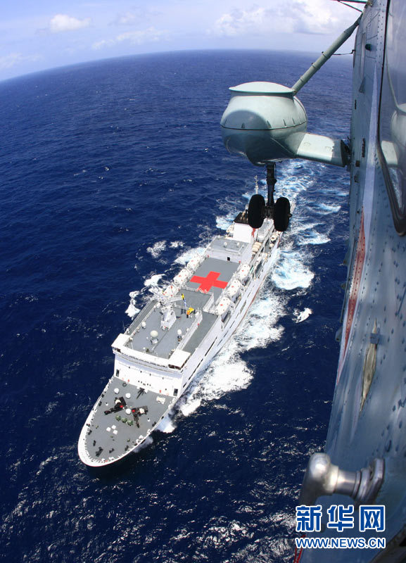 執(zhí)行“和諧使命—2010”任務(wù)的中國“和平方舟”號醫(yī)院船安全航行5300余海里后,于15日駛抵亞丁灣。2天后,醫(yī)院船將與正在亞丁灣海域執(zhí)行護航任務(wù)的中國海軍第六批艦艇編隊會合,并為護航官兵展開全方位的醫(yī)療服務(wù)。“和平方舟”號醫(yī)院船8月31日從中國舟山啟航,前往亞丁灣海域及吉布提、肯尼亞、坦桑尼亞、塞舌爾、孟加拉國等亞非五國執(zhí)行“和諧使命—2010”任務(wù)。查春明 攝 (圖片來源:新華網(wǎng))