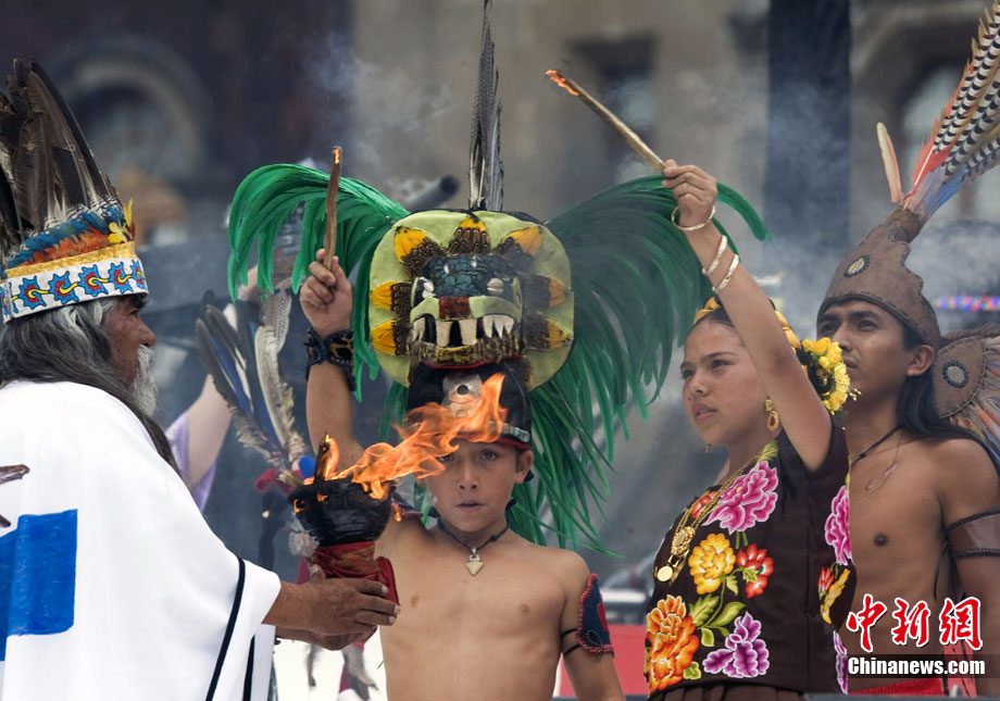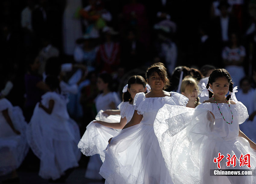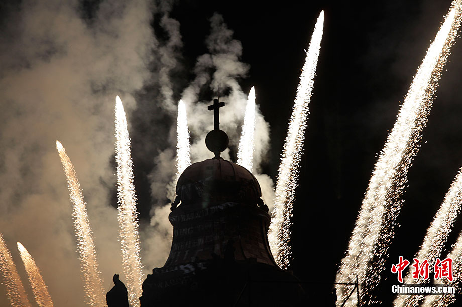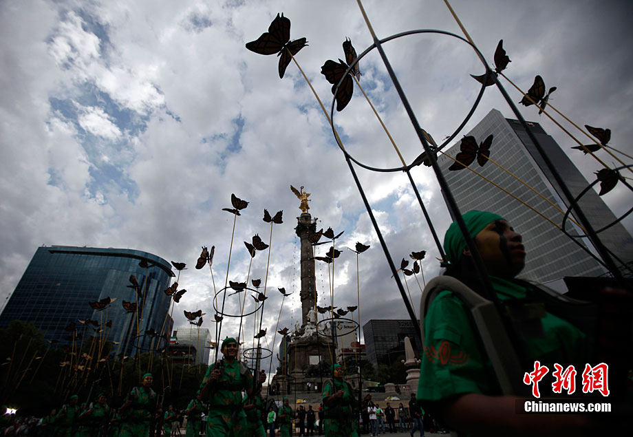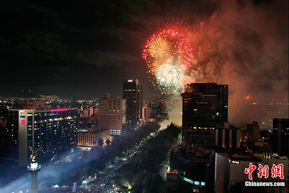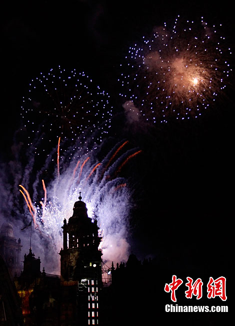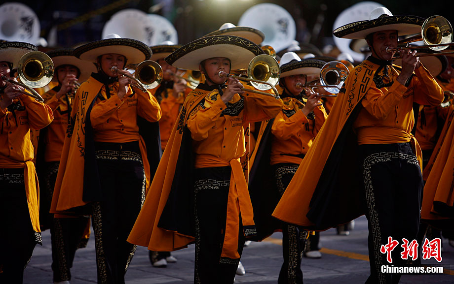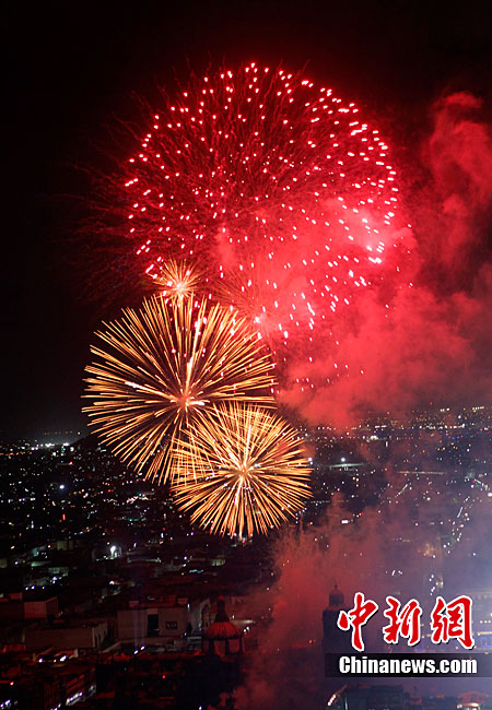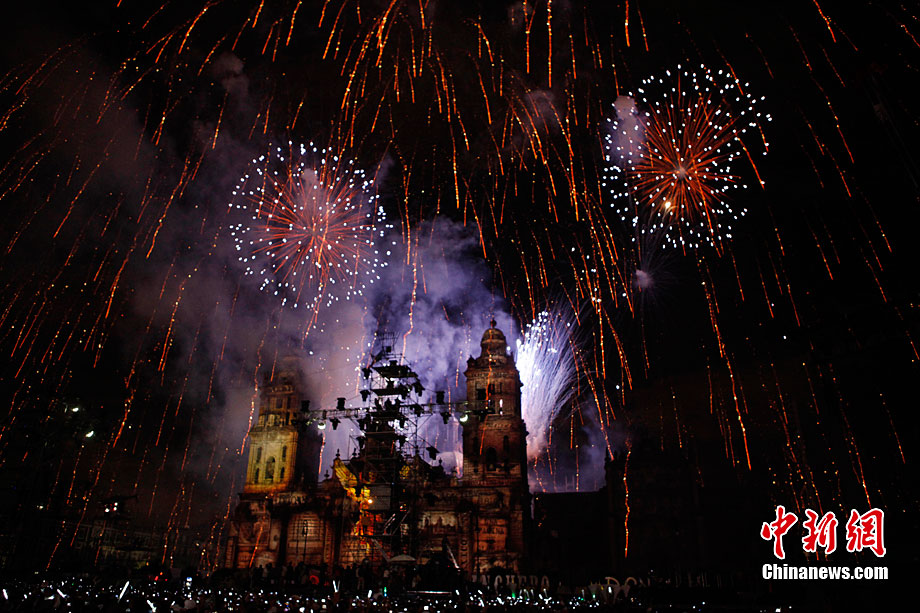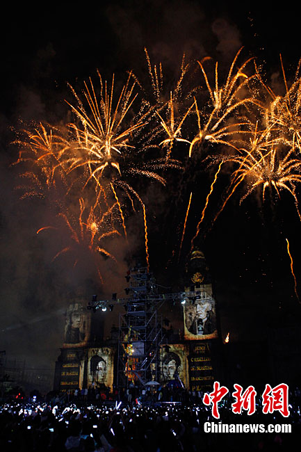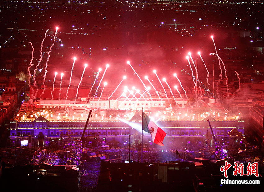 當地時間9月15日,墨西哥首都墨西哥城的廣場上舉行了紀念獨立200周年慶祝活動開幕式表演。