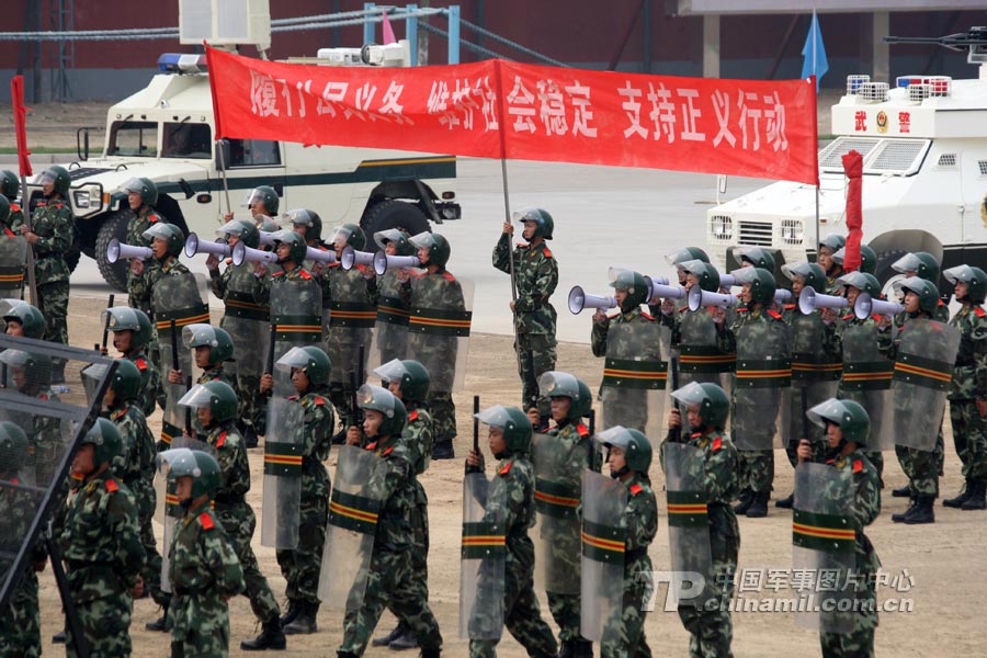 阻截網、裝甲車、水炮車,專業的處突裝備讓武警官兵如虎添翼……