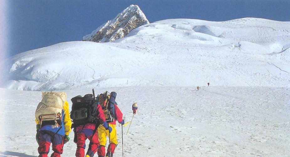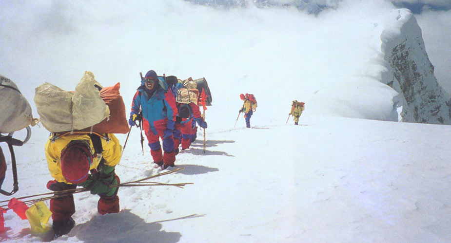 在中國雪域高原,有一群英勇無畏的登山健兒們一次次地讓五星紅旗在世界之巔高高飄揚,這是西藏登山隊——一支英雄的隊伍,世界登山界的一支勁旅。